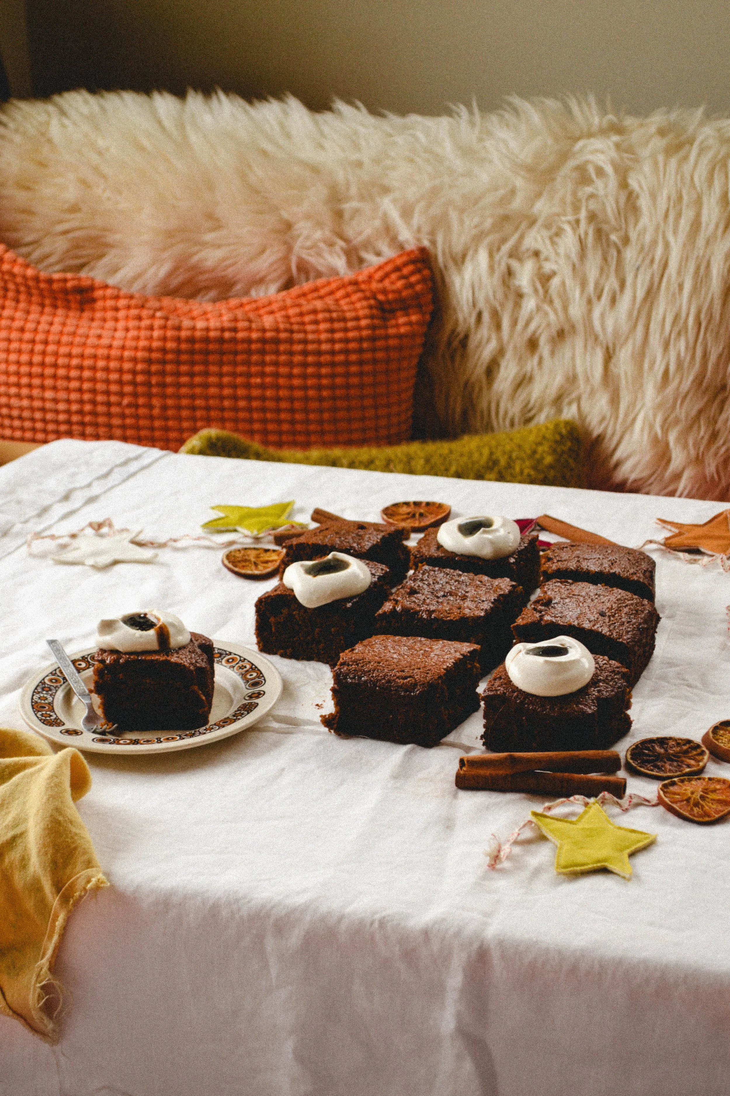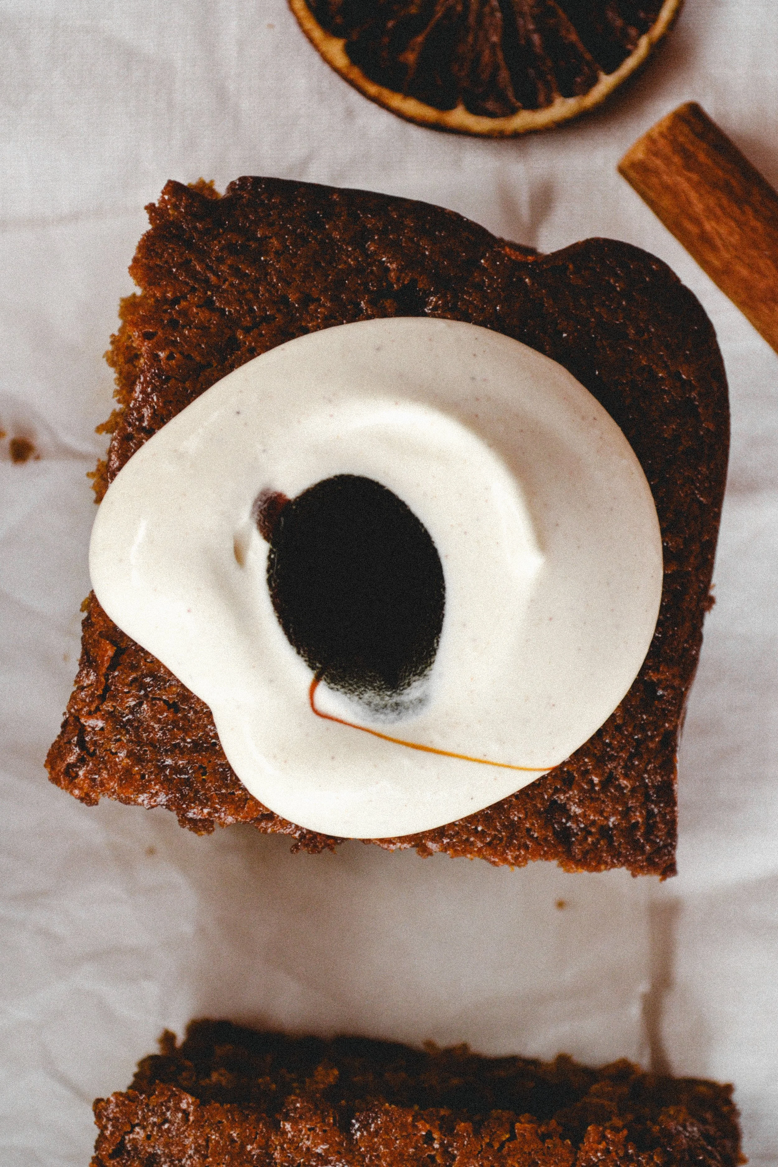 The maritimes-style gingerbread cakes are delightfully light and fluffy, but this version is slightly dense, fudgier, more moist, and stays fresher for longer. We sold this gingerbread cake at my family’s bakery, and my Mom upon each sale would suggest to serve it with cinnamon cream that is whipped to soft peaks so it “falls down your throat.” I was, and still am, obsessed with this description and the immediate sensory response it creates.